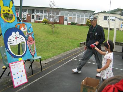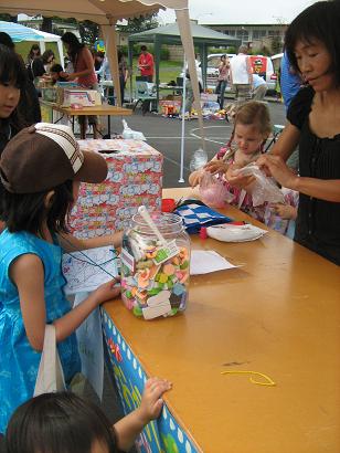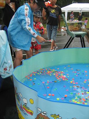 屋外のヨーヨーつり、スーパーボールすくいコーナー。