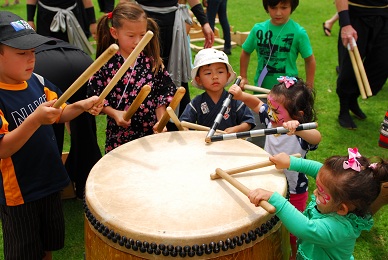 子どもたち向けにTAIKOのWORKSHOPを行ってくださいました。大きな太鼓、大きな撥、大きな音。貴重な体験をさせていただきました。