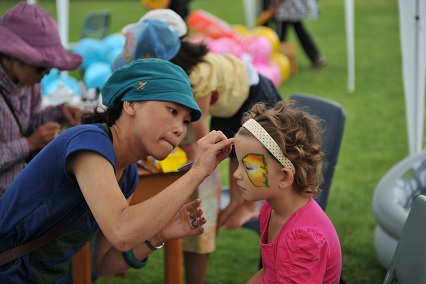WESTひまわり プレイグループの皆さんによるTATOO、フェイスペイント、ネイルコーナーは大人気。30分まちもあったとか。