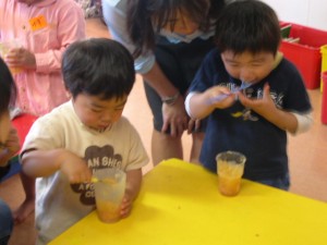 こどもたちはモーニングティー~そしてふしぎなぐるぐるデザート作り。