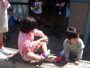 単純なかざぐるまでも、こどもたちのいい遊び道具。