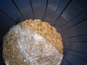 6時間、お豆をぐつぐつ煮て、それをつぶし、麹と混ぜて、樽(・・・という名のゴミ箱)につめる。