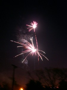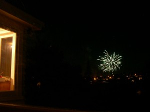 うちの庭にあるジャングルジムに登ってみると、あちこちで花火があがっているのが分かります。