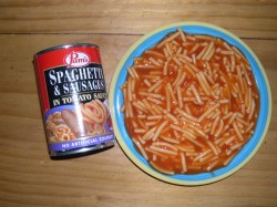 ニュージーランドでは、スパゲティーが缶詰にはいっています。(注意:もちろん乾燥したスパゲッティーも売っています。)