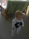 お母さんが、ひもが外れないようにしっかり固定して、「Go!」と声をかけると・・・・最近ますますたくましくなってきた足を思いっきりつかって、ジャンプ始めました!