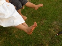 芝の上をはだしで歩いたり走ったり。私も子供のころ、やっていたっけ。とっても気持ちがいいんですよね。だけど、ニュージーのこどもたちはぺたぺた行きます、どこまでも。アスファルトの上、土の上、水の中。はたまたハンバーガーショップにスーパーの中。ぺた、ぺた、ぺた。