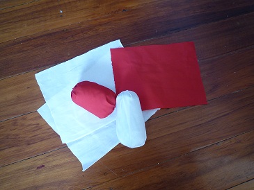 赤や白の布を5個分ずつお母さんたちにもって帰ってもらって、