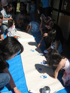 ペイントを手のひらにたっぷりつけて、ぺた!ぺた!