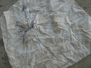タコ糸で布のあちこちを縛ったり、結び目を作ったり。