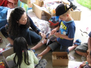 子どもたちが、看板作りや景品の仕分けに参加してくれました。