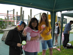 スーパーボールすくいは、この3人娘。地元の高校に通い、日本語を勉強している女の子もお手伝いに来てくれました。