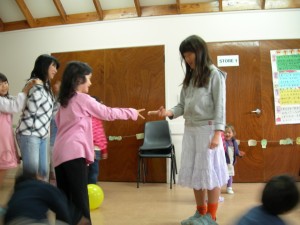 モーニングティーを食べた後は、体を使ってじゃんけんゲーム。